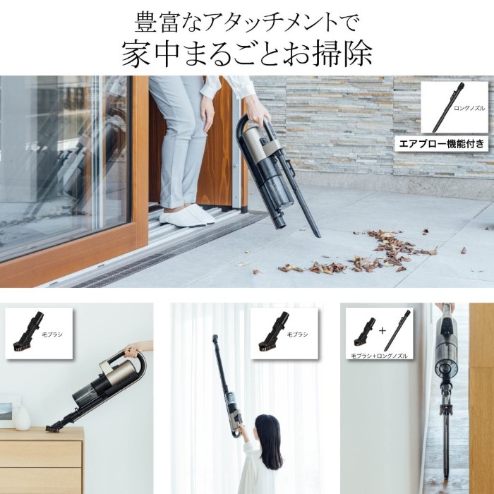 ■ 三菱(MITSUBISHI) ■家族みんながらくらく使える、ゆとりができる。◆ 主な特長 ◆◆ 主な仕様 ◆■集塵方式:サイクロン式■ノズルタイプ:自走式パワーブラシ(快速からみにくい自走式パワーブラシ)■充電池:リチウムイオンバッテリー■運転時間(約):標準(40分)、強(10分)■充電時間(約):70分■本体寸法(約):スティック時:幅225×奥行190×高さ1,005mm収納時:幅270×奥行270×高さ1,020mm■本体質量(約):1.3kg (付属品含む:1.9kg)■集塵容積(約):0.25L■付属品:アレルパンチクリーンふとんクリーンブラシ、毛ブラシ、ロングノズル、お手入れブラシ、充電台簡易商品仕様シリーズ名:iNSTICK(三菱電機)ブランド名:三菱|三菱電機メーカー型番:HC-JD2C-N代表カラー:ゴールドカラー:マットグランゴールド集塵方式:サイクロン掃除機タイプ:ハンディ&スティック本体重量:1.9kgコードレス使用:コードレス使用可能ブランド名(カナ):ミツビシシリーズ名(カナ):ズバキュー