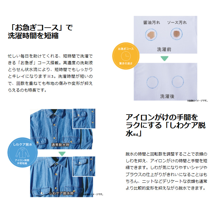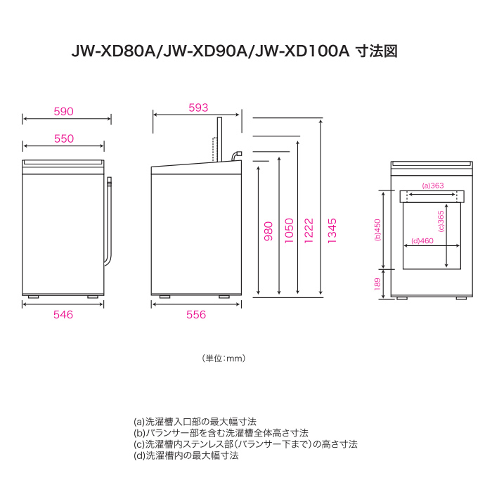 ■ Haier(ハイアール) ■液体洗剤・柔軟剤自動投入高濃度スパイラル洗浄EX 高濃度スパイラル洗浄EX除菌コース 除菌コース◆ 主な特長 ◆●「ほしい」がちゃんとある。家族想いな洗濯機「XDシリーズ」パワーアップした「洗浄力」、手間を軽減する「便利」さ、衣類を除菌できて「清潔」。みんなの「ほしい」を叶え、使いやすさにもこだわった、家族想いな洗濯機です。●洗剤の力をしっかり引き出す「高濃度スパイラル洗浄EX」洗剤濃度の高い状態で低水位洗浄を行うことで、繊維のすみずみまで洗剤を浸透させます。その後、3Dウィングバルセーターが作り出す強力ならせん状水流でかくはんしながら、チェッカードタンクの凸凹でもみ洗い。衣類を傷めずしっかりと洗浄します。●計量の手間が省けて便利「液体洗剤・柔軟剤自動投入」衣類の量に合わせて洗剤と柔軟剤を自動投入。タンクは、詰め替え用パウチ1本分がまるまる入る約560mlの大容量で、頻繁に補充する必要もありません。それぞれのタンクが取り外して洗えるだけでなく、モード設定で経路の自動洗浄もできます。●「除菌コース」で気になるニオイ対策除菌キャップから流れる成分が水に溶けて衣類を除菌。汗や部屋干しのニオイを抑制します。●見やすく、使いやすい「クリアガラストップ」クリアガラストップを採用しているので、フタを閉めた状態でも洗濯の様子や洗剤・柔軟剤のタンク残量が確認できて安心。フラットだからお手入れもしやすく、清潔をキープできます。●「ほぐし仕上げ」でするっと取り出せる衣類を取り出しやすくするため、脱水後にほぐし運転をします。からみをほぐすことで取り出す時に衣類に負担をかけず、すっと取り出せるので、時短にもストレス軽減にも繋がります。●「ちょっと槽洗浄」で洗濯槽も清潔に約2分間、洗濯・脱水槽を空の状態で軽くさっと洗います※1。洗濯後に使用することで、カビの発生を抑制する効果が期待できます。●低騒音※2と低振動を実現する「DDインバーターモーター」騒音・振動の原因となるベルトを使わず、洗濯槽とモーターを直結させることで低騒音※2と低振動を実現。深夜や早朝でも、時間を気にせず安心して洗濯できます。●「お急ぎコース」で洗濯時間を短縮忙しい毎日を助けてくれる、短時間で洗濯できる「お急ぎ」コース搭載。高濃度の洗剤液とらせん状水流により、短時間でもしっかりとキレイになります※3。洗濯時間が短いので、回数を重ねても布地の傷みや変形が抑えらえるのも特長です。●アイロンがけの手間をラクにする「しわケア脱水※4」脱水の時間と回転数を調整することで衣類のしわを抑え、アイロンがけの時間と手間を短縮できます。しわが気になりやすいシャツやブラウスの仕上がりがきれいになることはもちろん、ニットなどデリケートな衣類も通常より比較的変形を抑えながら脱水できます。※1 槽洗浄1コースを使用ください。※2 運転音:洗い時38dB、脱水時39dB。運転音の表示は一般社団法人日本電機工業会洗濯機性能評価基準による。深夜のお洗濯は近隣へのご配慮をお願いします。※3 2019年8月、JW-CD55A「お急ぎ」コーステスト結果。条件により汚れ落ちは異なり、洗浄力の保証はできません。シミ汚れ等の洗濯は避けてください。洗濯容量は2.0kgとなります。※4 脱水容量は1.0kgまでとなります。◆ 主な仕様 ◆■洗濯・脱水容量(kg): 8.0■標準水量(L): 自動:24L〜51L(無段階) 手動:22L〜64L(5段階)■標準使用水量(L): 97■目安時間(高水位時): 標準コース31分 お急ぎコース15分■電源電圧(V): 単相100(50Hz/60Hz共用)■消費電力(W)(50Hz/60Hz): 350■消費電力量(Wh)(50Hz/60Hz): 48■運転音(洗い時・脱水時)(dB)※(50Hz/60Hz): 38・39 ※運転音の表示は(一社)日本電機工業会洗濯機性能評価基準によるものです。■総外形寸法(mm)(給・排水ホース含む)※: 幅590×奥行593×高さ1050 ※【全自動洗濯機】実際の据え付け時には、ボディ幅+排水ホース+設置のスペースが必要です。■ボディ幅(mm): 550■対応防水パン(内寸)(mm): 幅586×奥行556以上■洗濯槽・脱水槽: ステンレス■排水方向: 左・右2方向■質量(kg): 42.0簡易商品仕様シリーズ名:-ブランド名:Haierメーカー型番:JW-XD80A-W代表カラー:ホワイト開閉タイプ:上開き洗浄方式:水流式(縦型)洗濯容量:8kg本体横幅:590mm本体高さ:1050mm洗剤・柔軟剤自動投入:有洗濯機スタイル:全自動式本体奥行:593mmカラー:ホワイト乾燥方式(洗濯機・洗濯乾燥機):送風乾燥配送サービス:設置対応可ブランド名(カナ):ハイアール