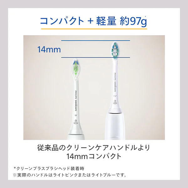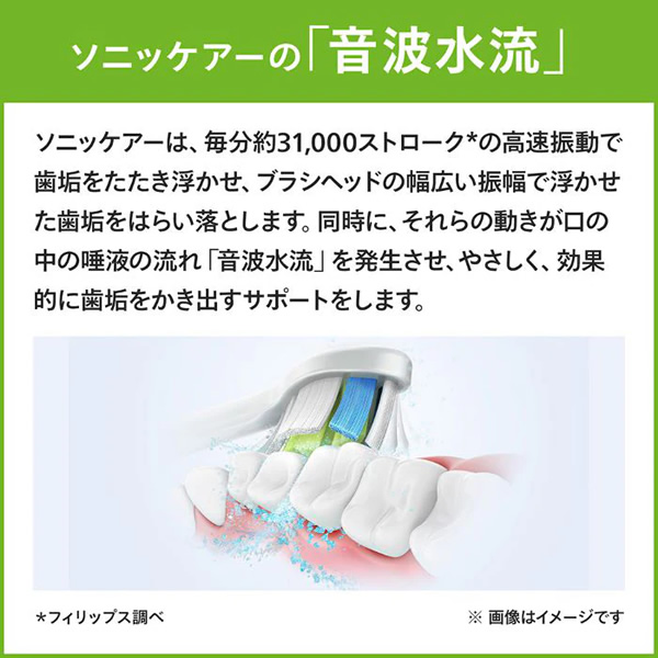 ■ Philips(フィリップス) ■◆ 主な特長 ◆●パッケージ内容・本体・ホワイトプラスブラシヘッド(レギュラー)1本・充電器台※電源アダプタは付属していません。●使いやすいベーシックな機能をお好みの方へ●コンパクト+軽量 約97g従来のクリーンケアハンドルより14mmコンパクト※クリーンプラスブラシヘッド装着時●初心者にも安心ソニッケアー 全種類共通の機能弱めの力でスタート [イージースタート]磨きすぎ防止 [スマートタイマー]磨く時間の目安をお知らせ [カドペーサー機能]●USB充電器台●ソニッケアーの「音波水流」ソニッケアーは、毎分約31,000ストロークの高速振動で歯垢をたたき浮かせ、ブラシヘッドの幅広い振幅で浮かせた歯垢をはらい落とします。同時に、それらの動きが口の中の唾液の流れ「音波水流」を発生させ、やさしく、効果的に歯垢を書き出すサポートをします。高速振動が「たたき浮かす」幅広い振幅が「はらい落とす」音波水流で「かき出す」※画像・イラストは別シリーズを使用している場合がございます。◆ 主な仕様 ◆電源方式:充電式電圧:DC5V(USB Type A)充電時間(約):24時間使用可能時間(約):14日間(スタンダードモードで、2分間のブラッシングを1日2回)サイズ(約):高さ238×幅25×奥行26mm(クリーンプラスブラシヘッド装着時)重量(約):97g(クリーンプラスブラシヘッド装着時)付属品:充電器、ハンドル(2100 シリーズ×1本)、ブラシヘッド(ホワイトプラスレギュラー(ホワイト)×1本)※付属の替ブラシは本体装着分を含みます。簡易商品仕様シリーズ名:ソニッケアーブランド名:PHILIPS|フィリップスメーカー型番:HX365131代表カラー:ピンク研磨方法:振動式電源方式:充電タイプカラー:ピンクブランド名(カナ):フィリップスシリーズ名(カナ):ソニッケアー