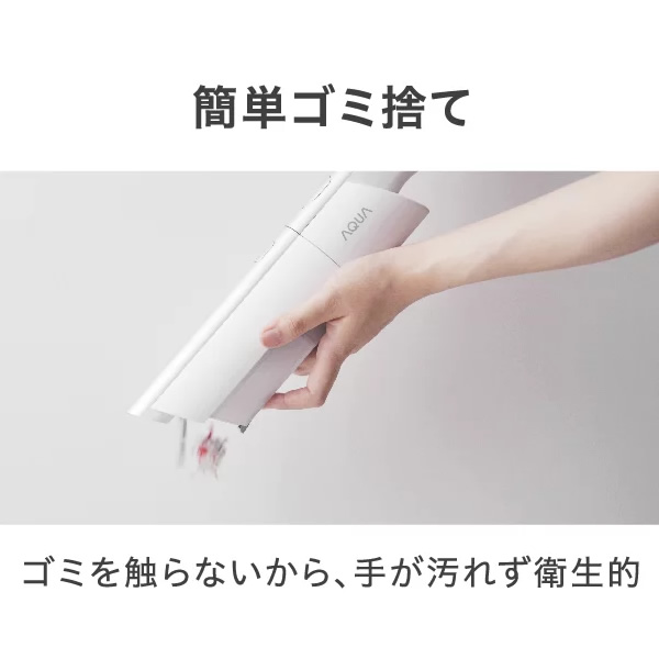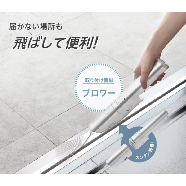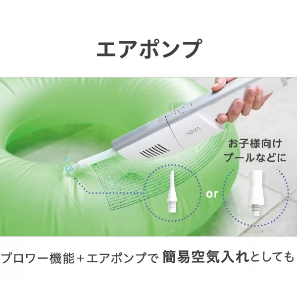 ※本商品は今現在、納期の目安が約1週間以降になります。 (あくまで目安ですので変わる可能性もございます。) ご注文の際はご了承いただきますようよろしくお願い致します。■ AQUA(アクア) ■こだわりのハイブリッド回転ブラシで、毛ゴミもしっかり絡め取る。ブラシは水洗いできるのでいつでも清潔。吸引では届かないゴミもきれいな空気を吹き出すブロワー機能で吹き出せる。浮き輪などの空気入れとしても使えるエアーポンプ付きスタイリッシュで使いやすい、インテリアとして馴染むシンプルでおしゃれな外観◆ 主な特長 ◆●軽くてコンパクトなのにパワフル吸引●届かない場所もブロワー機能で飛ばして便利キレイな空気を吹き出すクリーンブロワー●用途にあわせて選べる3wayノズル●ハイブリッド回転ブラシでペットの毛ゴミもしっかり絡めとります●ブロワー機能+エアポンプで簡易空気入れとしても使えます●ワンタッチでゴミに触れず、簡単にゴミが捨てられます●コンパクトなので収納スペースに困りません●ノズル類をまとめるケース付き、必要なときにすぐに使えます◆ 主な仕様 ◆■電源(ACアダプター)入力:AC 100-240V 50/60Hz 出力:DC 14.0V 1.0A■消費電力約14.0W(本体充電時)■電源方式充電式(バッテリー:リチウムイオン電池11.1V)■連続運転時間強:約9分、標準:約20分(満充電・電池初期・20℃時)■充電時間約3時間※使用環境により異なります■集じん容積約0.15L■外形寸法高さ395×幅58×奥行き75(mm)■質量630g(掃除機本体とダストカップ部・電池を含む)簡易商品仕様シリーズ名:-ブランド名:AQUA|アクアメーカー型番:AQC-HD1A-W代表カラー:ホワイトカラー:ホワイト掃除機タイプ:スティック型本体重量:0.63kgコードレス使用:コードレス使用可能ブランド名(カナ):アクア