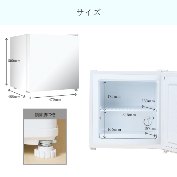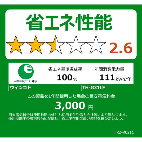 ※業務用使用の場合は補償対象外となります。※商品について※こちらの商品は扉が左右付け替え可能な冷凍庫です。扉の付け替えに関してましては、お客様自身での作業になります。■ WINCOD(ウィンコド) ■TOHOTAIYO(トーホータイヨー)ガラスドア 31L 冷凍庫 TH-G31LF-WHライフスタイルにあわせて冷凍・冷蔵を切替えられる◆ 主な特長 ◆●お部屋に合わせて扉の向きを変えられるネジを付け替えることで、ドアの開き方を左右で変えることが出来ます。お部屋のレイアウトに合わせて変更可能なので、壁際や限られた場所の設置にも向いています。●コンパクトなのに大容量で驚きの収納力中央の棚を取りはずせるので、使用シーンに合わせて、しっかり収納することができます。設置場所を選ばないコンパクトなサイズです。●ライフスタイルにあわせて、冷凍・冷蔵を切替えてご利用いただけます。ダイヤルを回すだけで、冷凍・冷蔵を切替えられます●電子レンジも置ける耐熱トップテーブル天板は耐熱性なので、電子レンジなどをおくことができます。●最高水準の冷凍機能を搭載冷凍室の性能はJIS規格(日本工業規格)で規定されています。その中でももっともすぐれた性能を表すのがフォースターです。◆ 主な仕様 ◆■定格内容積:31L■冷却方式:直冷式■定格電流:0.8A/0.8A (50/60Hz)■消費電力量:約111KWh/年■定格電圧:交流100V 50/60Hz■冷媒:ノンフロン R600a■運転音:約28dB■冷凍庫の記号:フォースター ■電源コード/アース線:約2.0m/約2.0m■本体重量:約16kg■外寸寸法:幅470mm×奥行458mm×高さ500mm■付属品:製氷皿、霜取りヘラ、取扱説明書■使用環境:周辺温度:5〜32℃、周辺湿度:20%〜80%(結露なきこと)簡易商品仕様シリーズ名:TOHOTAIYOブランド名:WINCOD|ウィンコド|TOHOTAIYOメーカー型番:TH-G31LF-WH代表カラー:ホワイトドアの開き方:右・左開き付け替え可能定格内容積:31L年間電気代:2997円本体奥行:458mm本体横幅:470mm本体高さ:500mm省エネ性マーク(緑):省エネ性マーク(緑)カラー:ホワイトブランド名(カナ):トーホータイヨーシリーズ名(カナ):トーホータイヨー省エネ目標年度:2021