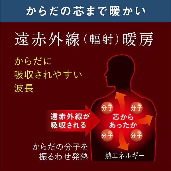 ■ DAIKIN(ダイキン) ■遠赤外線暖房機 ハイブリッドセラムヒート WRH136AS-H◆ 主な特長 ◆●遠赤外線×温風遠赤外線・温風、それぞれのメリットを活かして快適暖房。はじめはすばやく温風を吹き出し、足元から暖かさが広がります。そして吸収されやすい波長の遠赤外線が、からだの芯からあたためます。●ハイブリッド自動運転遠赤外線と温風を自動コントロール。「遠赤外線(輻射)運転」、「温風運転」それぞれの単独運転も行えます。●温風・約10秒で温風を吹き出し、すばやく暖める。・風左右スイング自動運転/温風運転設定時に左右各40°の範囲で温風をスイング。ご家族で暖まれます。(上下方向は手動操作になります。)●人感センサーモード●リズムモード●チャイルドロック、パネルロック(前面パネル)◆ 主な仕様 ◆■電源:単相100V 50/60HZ■消費電力:0.25〜1.25kW (待機電力約1W)※停止時もマイコンを働かせるため、電力を消費します。■風量:0.6〜1.3m3/min■最大運転音:40dB(最大)■運転電流:2.5〜12.5A※通電時間を制御しているため、パワー調節の数値が小さくても最大値電流が流れます。■1時間あたりの電気代目安:7.75〜38.8円(最小〜最大)※電力料金目安単価を31円/kWh(税込み)[令和4年7月改定]にて試算■ヒーター:遠赤外線輻射:セラミックコーディングシーズヒーター 2本(Φ12×2)/温風:リボンヒーター2本■能力制御:自動:250〜1,100W(可変 運転開始時は1,250W)/輻射:250〜1,100W(可変)/温風:250〜1,250W(可変)※デジタル表示は100W単位のため、250Wは300W、1,250Wは1,300W表示になります。■電源コード長さ:3m(キャプタイヤコード)※延長コードの使用やタコ足配線はしないでください。火災の原因となります。■質量:10kg■外形寸法(高さ×幅×奥行):522×500×226mm■角度可変:温風吹き出し角度:水平〜上向き10°(手動)、左右各40°(自動スイング)■ボディカラー:ダークグレー(-H)■暖房方式:遠赤外線(輻射)/温風■節電機能:人感センサーモード/リズムモード(輻射のみ)/自動パワーセーブ※ 室温、吹き出し温度が高くなると、運転/パワー調節の設定に応じて出力を落とし、消費電力を抑えた運転になります。■快適:ハイブリッド自動運転/輻射運転/温風運転/ひかえめモード/左右スイング(温風吹き出し口)■安全設計:二重過熱防止機能(温度サーミスタ、温度ヒューズ、サーモスタット)/二重転倒OFF機能(転倒保護スイッチ)/最長6時間自動停止/チャイルドロック/パネルロック■その他:デジタルワット表示/タイマー(6/4/2/1/0.5h)簡易商品仕様シリーズ名:CERAMHEAT(ダイキン)ブランド名:DAIKIN|ダイキンメーカー型番:WRH136AS(H)代表カラー:グレーストーブ・ヒーターのタイプ:電気ストーブストーブ・ヒーターの燃料:電気遠赤外線:有最大消費電力:1W最大適用畳数(木造):6畳発売年月日:2025/10/1本体高さ:522mmカラー:グレーリモコン:有最大適用畳数(鉄筋):8畳ブランド名(カナ):ダイキンシリーズ名(カナ):セラムヒート発売年月日(テキスト):2025年10月