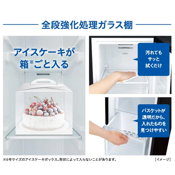 ■ AQUA(アクア) ■幅が40cmなのでリビングや寝室などの家具の隙間に設置できる。インバーター搭載で省エネ静音設計◆ 主な特長 ◆●温度切り替え機能で冷凍・チルド・冷蔵に切り替え可能●インバーター搭載で電力消費が抑えられ電気代を節約●静音設計なので音が気になる場所でもおきやすい●天面が耐熱トップテーブルなので電子レンジなどでも置ける●2段の引き出しで整理しやすく取り出しやすい●前段強化処理ガラス棚なので丈夫でお手入れカンタン◆ 主な仕様 ◆●製品仕様定格内容積:76L外形寸法:幅400mm×高さ947mm×奥行597mm据付必要奥行寸法:597mm年間消費電力量(50Hz/60Hz):180/180kWh/年定格消費電力 電動機(50Hz/60Hz):60/60W定格消費電力 電熱装置(50Hz/60Hz):90/90W製品質量:27kg簡易商品仕様シリーズ名:-ブランド名:AQUA|アクアメーカー型番:AQF-SFA8R-K代表カラー:ブラックドアの開き方:右開き定格内容積:76L本体奥行:597mm本体横幅:400mm本体高さ:947mmブランド名(カナ):アクア