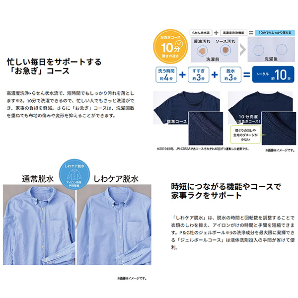 ※この商品は「予約」として承ります。入荷次第の発送となります。※お問い合わせをいただきましても、納期に関してはお答えしかねる場合がございます。 お待ちいただける方のみご注文をお願い致します。■ Haier(ハイアール) ■高濃度スパイラル洗浄で爽快な仕上がり、お急ぎコースなら10分で洗濯完了◆ 主な特長 ◆●高濃度スパイラル洗浄で爽快な仕上がり●除菌コースで清潔&部屋干し臭を抑制●忙しい毎日をサポートする10分で洗濯できるお急ぎコース●洗う時間 約4分+すすぎ 約3分+ 脱水 約3分でトータル約10分●時短につながる機能やコースで家事ラクをサポート●清潔な槽で洗濯物をいつもキレイに●仕上がりで選べる多彩なコース◆ 主な仕様 ◆●製品仕様洗濯・脱水容量(kg):6.0乾燥容量(kg):槽風乾燥 2.0水量(L):12〜47標準使用水量(L):90目安時間(高水位時):標準コース33分 お急ぎコース10分消費電力(W)(50Hz/60Hz):350/400運転音(洗い時・脱水時)(dB)※(50Hz/60Hz):38/39・50/51総外形寸法(mm)(給・排水ホース含む):幅526×奥行500×高さ890ボディ幅(mm):485対応防水パン(内寸)(mm):幅490×奥行500以上洗濯槽・脱水槽:ステンレス質量(kg):26.0簡易商品仕様シリーズ名:-ブランド名:Haier|ハイアールメーカー型番:JW-U61C-W代表カラー:ホワイト開閉タイプ:上開き洗浄方式:水流式(縦型)洗濯容量:6kg洗濯機スタイル:全自動式