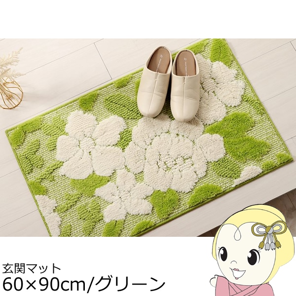 玄関マット【メーカー直送】イケヒコ ボリューム 滑りにくい 丸洗いOK 花柄 グリーン【送料別】