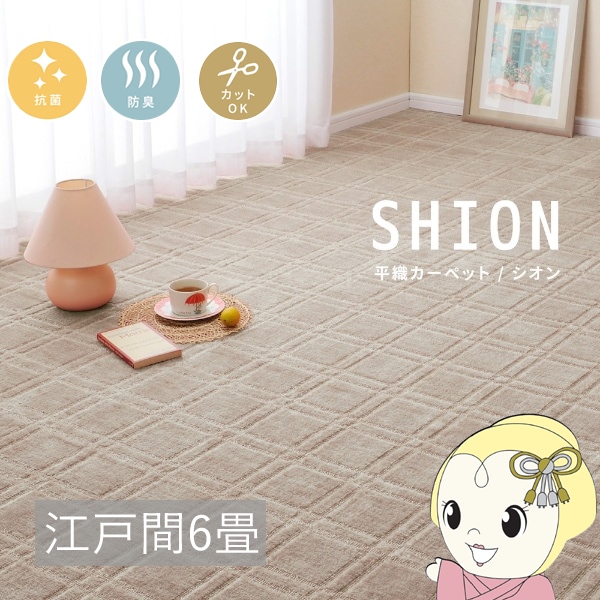 商品コード:HAGI-81955965カーペット 抗菌・防臭加工の平織カーペット シオン 江戸間6帖 261×352cm グレー【送料無料(北海道・沖縄・離島除く)】