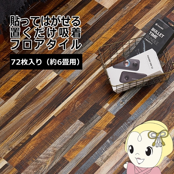商品コード:HAGI-81955985ウッド調フロアタイル ミックスブラウン 約91.4×15.2cm 72枚入り 貼ってはがせる 置くだけ 接着剤不要 カットOK 約6畳【送料無料(北海道・沖縄・離島除く)】