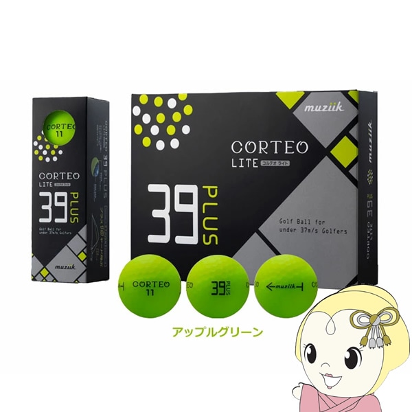 商品コード:WPD-S1000在庫限り ゴルフボール 12個入 muziik ムジーク 公式球 CORTEO LITE 39 PLUS コルテオライト39プラス アップルグリーン MZB-CT39-AG【送料別】