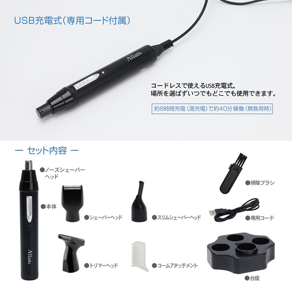 | 寸法 | 約φ2×H13cm(ノーズシェーバーヘッド取付時)コード:約80cm |